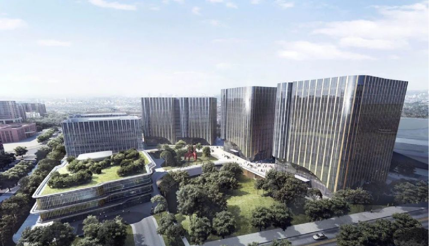科技園項(xiàng)目一期總建筑面積約22.5萬平方米,包含6棟研發(fā)樓和2層地下車庫(地下共3層,一二期地下相互聯(lián)通),還設(shè)有下沉廣場(chǎng)和商鋪,敞亮的下沉廣場(chǎng)將所有建筑連在了一起。T6樓設(shè)置了戶外屋頂花園,特別鋪設(shè)